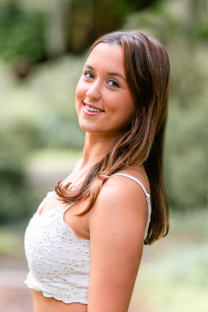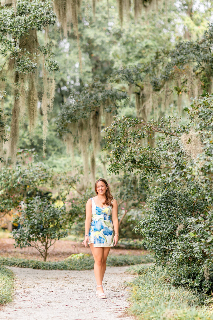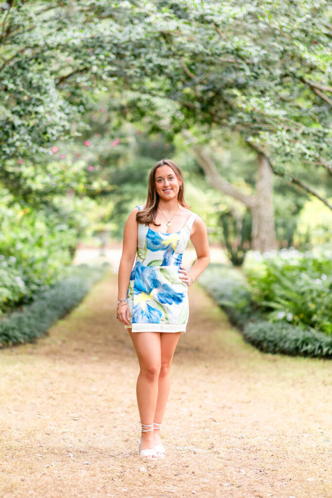 We kicked off Milly’s senior session at Airlie Gardens, where the oak trees drip with Spanish moss and create the dreamiest backdrops. Milly looked absolutely beautiful, and we had the best time exploring the gardens and finding the perfect spots for her photos.